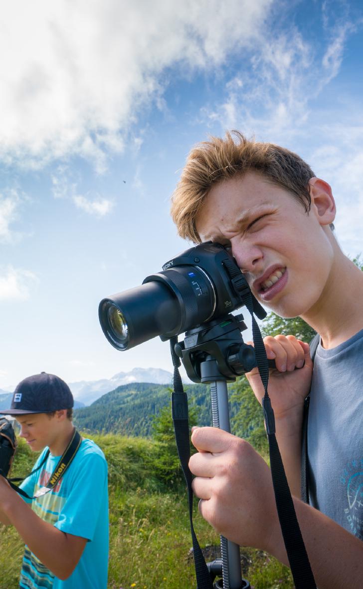 Beim Mediencamp lernen Kinder und Jugendliche den bewussten Umgang mit Smartphone und Fotoapparat in der Natur. Neben technischen Aspekten der Fotografie, wie Blende, Verschlusszeit oder Brennweite, erfahren die Teilnehmer auch wie Sie durch Einstellungsgrößen, Lichtsetzung und Komposition die Wirkung von Bildern verändern können.